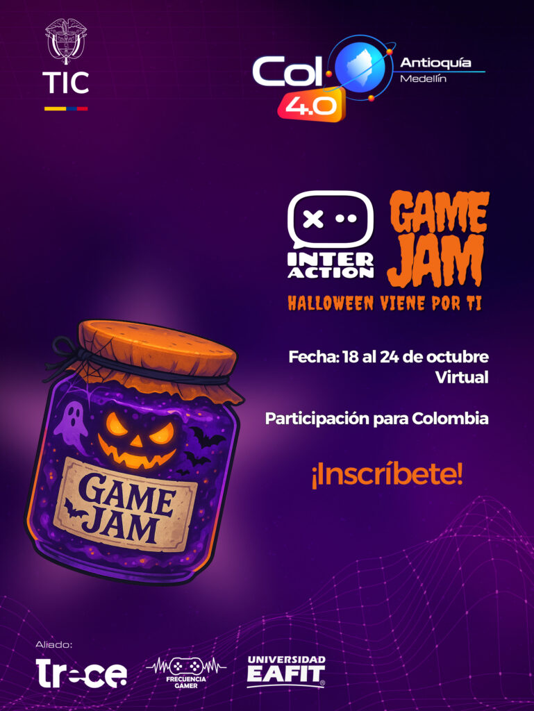 Además, anunciaremos el inicio de nuestra Game Jam de Halloween, una competencia llena de talento, terror y creatividad, cuyos proyectos se presentarán en el Col4.0 en Medellín el 28 de octubre.