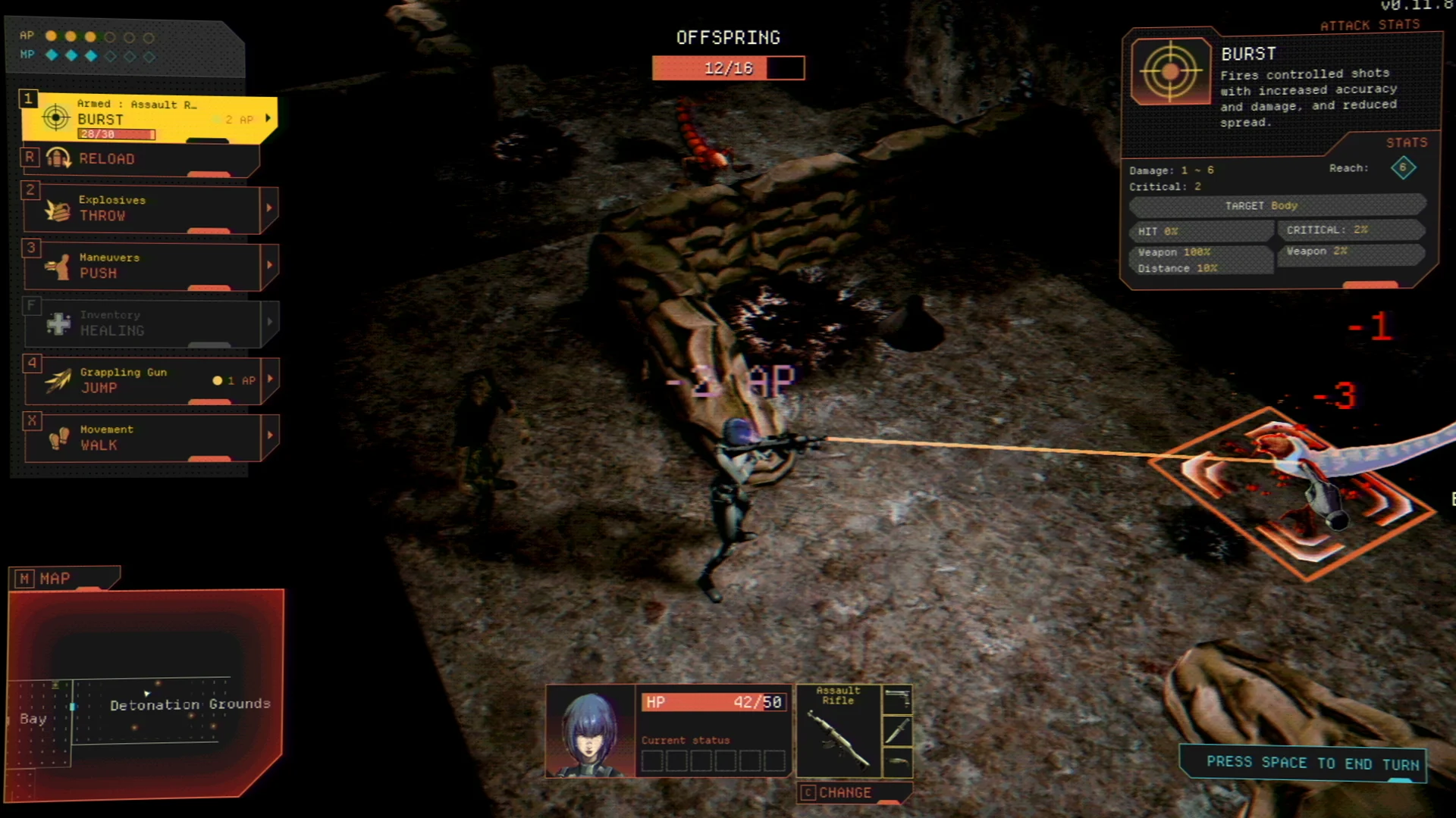 El núcleo de Vultures radica en su sistema de extracción táctica por turnos. La supervivencia depende de una planificación cuidadosa, ya que los recursos, como la munición y los paquetes de salud, son extremadamente limitados. Para explorar y sobrevivir, los jugadores pueden elegir y personalizar a sus agentes. Destacan dos operativos principales:
